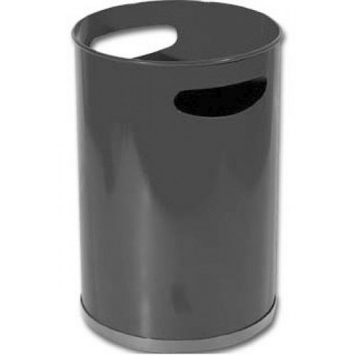 Cesto de papeis metálico com aro em pvc no fundo com pegas.