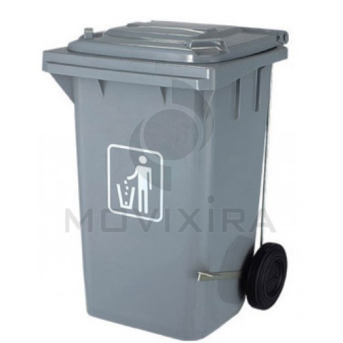 Contentor plástico para reciclagem de grande capacidade, com abertura mediante tampa superior com 2 rodas de cor cinza.