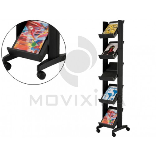 Expositor de chao movel com 5 prateleiras de 275x327mm de cor preta.